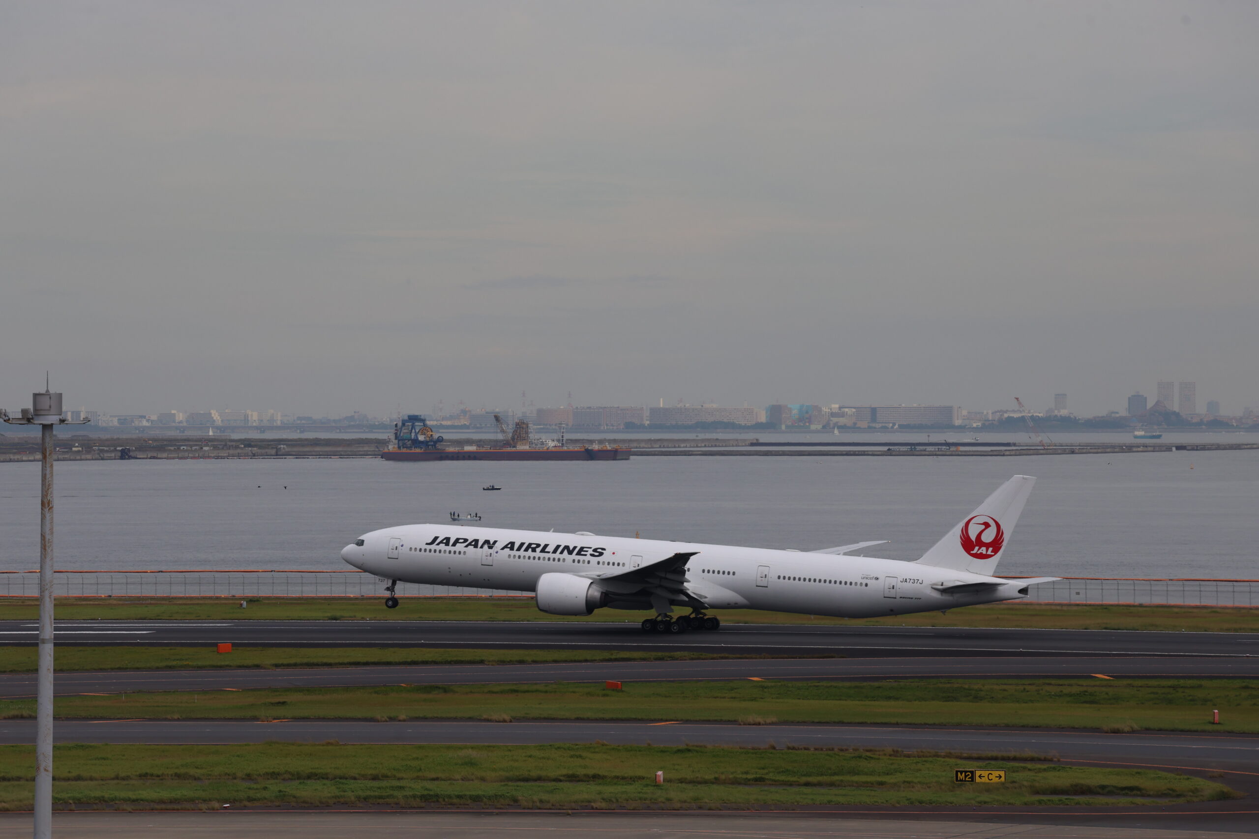 JALのB777-300ER JA737Jがシカゴへ向け、テイクオフ!