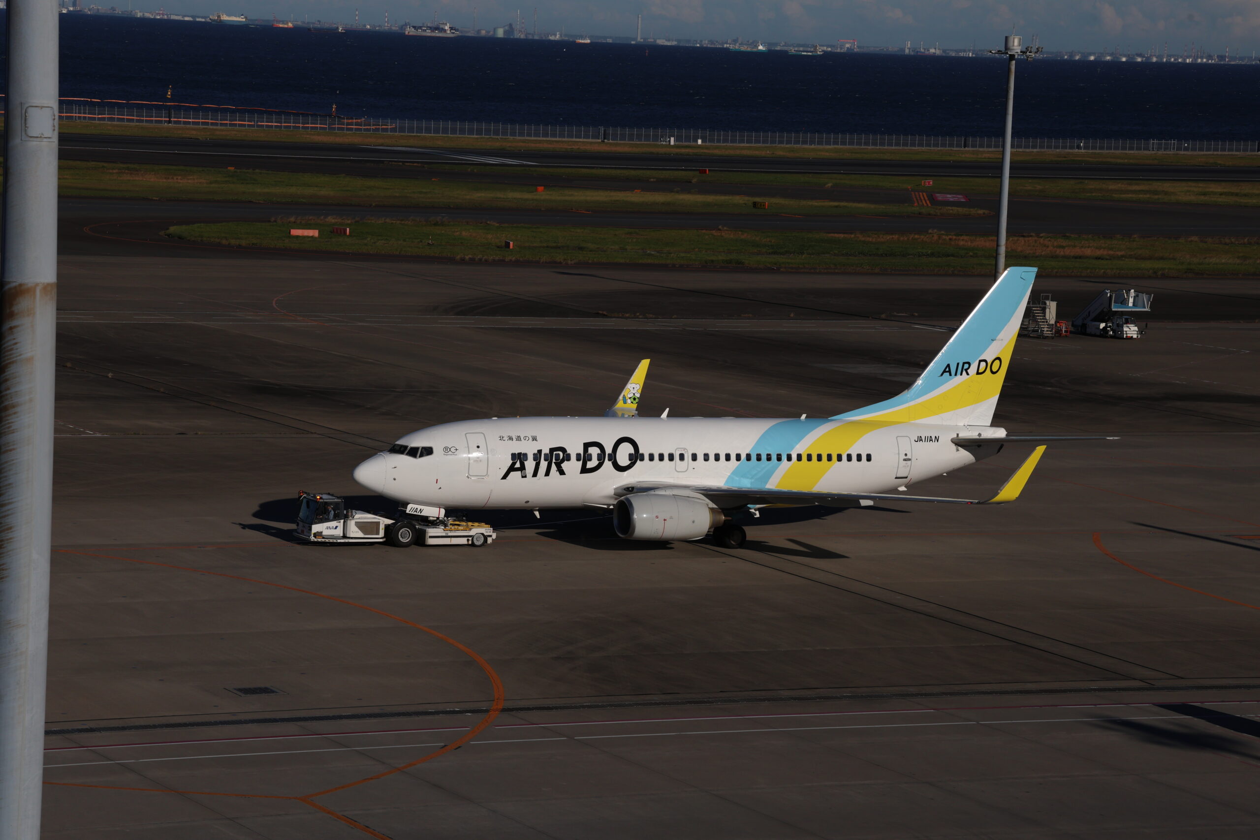トーイングされるAIRDOのB737-700 JA11AN。